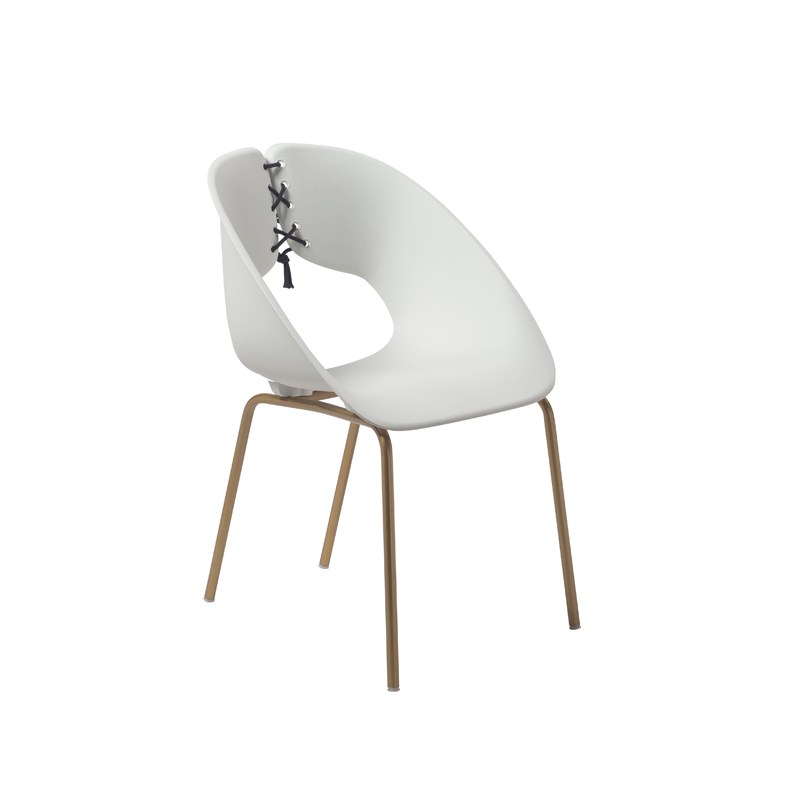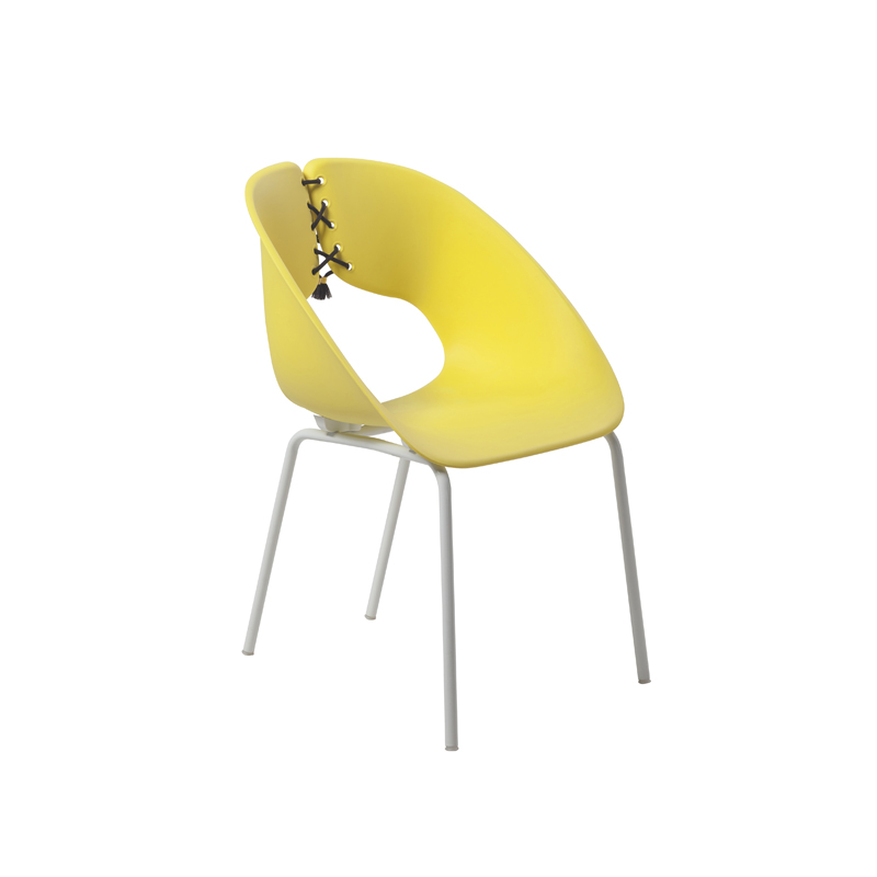 一個(gè)環(huán)抱式的坐墊靠背,加上模擬鞋帶創(chuàng)意連接,給人帶來(lái)全新的視覺(jué)體驗(yàn)。兩片靠背可在繩子的控制下適度根據(jù)人體靠背的曲線做出最適合的調(diào)整。